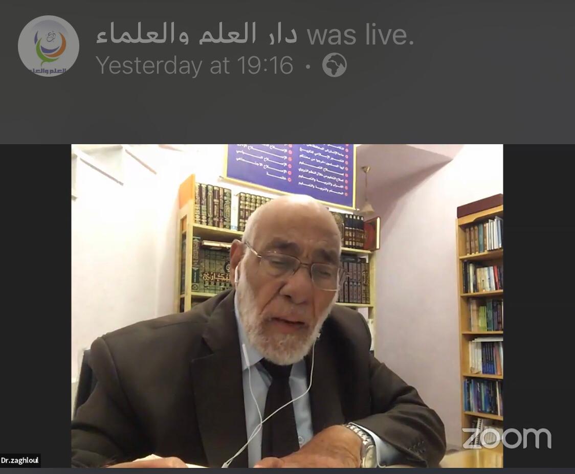 بدعوة من دار العلم والعلماء عقد اللقاء الثامن للخطباء والأئمة للبحث في قضايا الدعوة والناس والأمـة، وإستضاف عبر تطبيق “زووم” الداعية الدكتور زغلول النجار