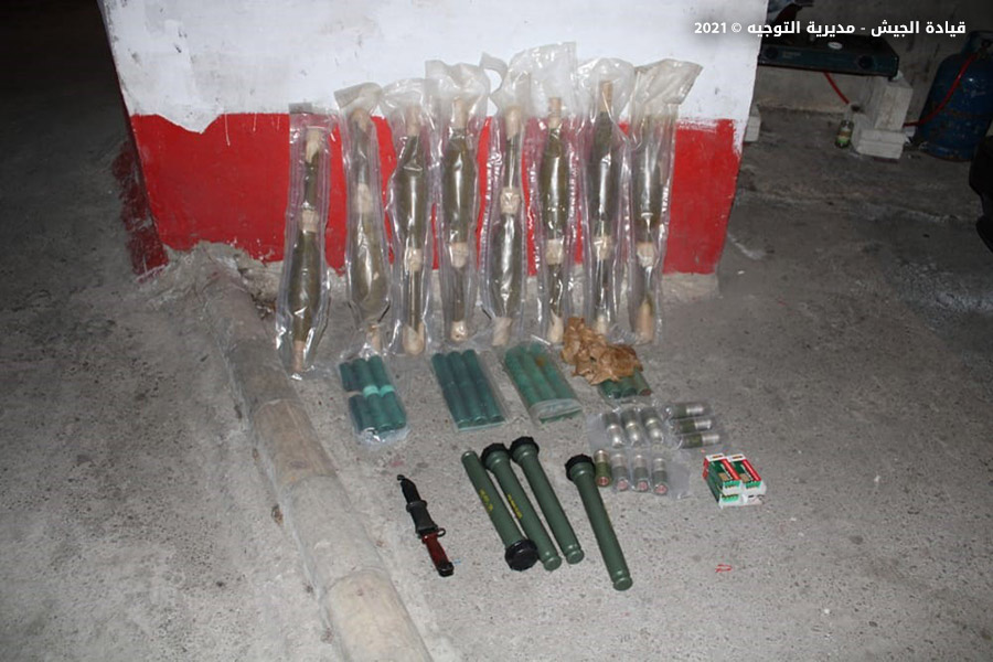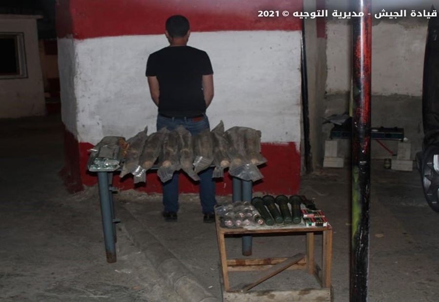 أصدرت قيادة الجيش مديرية التوجيه بياناً جاء فيه: “بتاريخ 27/ 4/ 2021 أوقفت وحدة من الجيش عند مدخل مخيم عين الحلوة صيدا الفلسطيني “م.أ”، وضبطت بحوزته 8 قذائف صاروخية نوع آر بي جي مع 12 حشوة دافعة عائدة لها، 10 رمانات بندقية عيار 40 ملم، 4 رمانات بندقية مضادة للأشخاص، وكمية من ذخيرة المسدسات والأعتدة الحربية”.