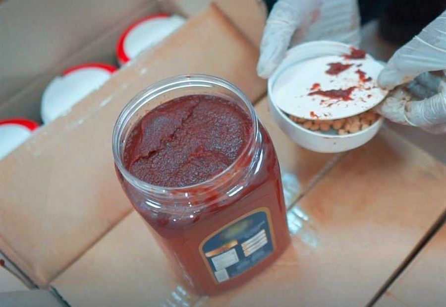 وأضاف البيان أن “حبوب الكبتاغون مُخبأةً بطريقة مصنعيّة داخل أغطية عُلب معجون الطماطم بحيث جرى تجويف الأغطية لغرض التهريب ووضع الحبوب بداخلها”.