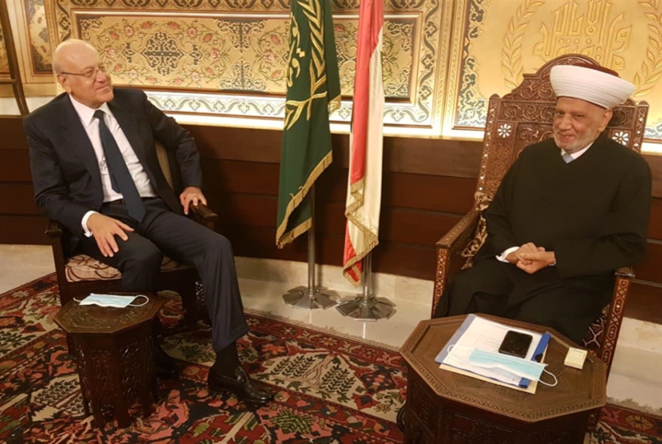 وصل رئيس الحكومة نجيب ميقاتي الى دار الفتوى قبل لحظات حيث يعقد خلوة مع مفتي الجمهورية اللبنانية الشيخ عبد اللطيف دريان يعقبها لقاء موسع مع المجلس الشرعي الاسلامي الاعلى.