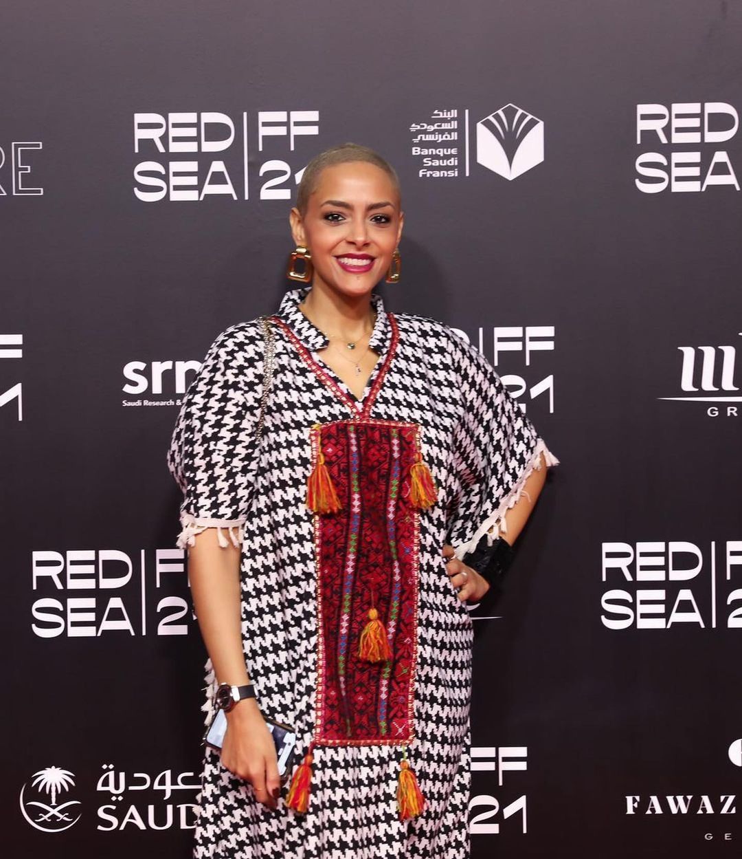 أطلت الممثلة السعودية أضوى الفهد على السجادة الحمراء حليقة الرأس في حفل ختام فعاليات الدورة الأولى لمهرجان البحر الأحمر السينمائي الدولي الذي عقد في مدينة جدة خلال الفترة الماضية.