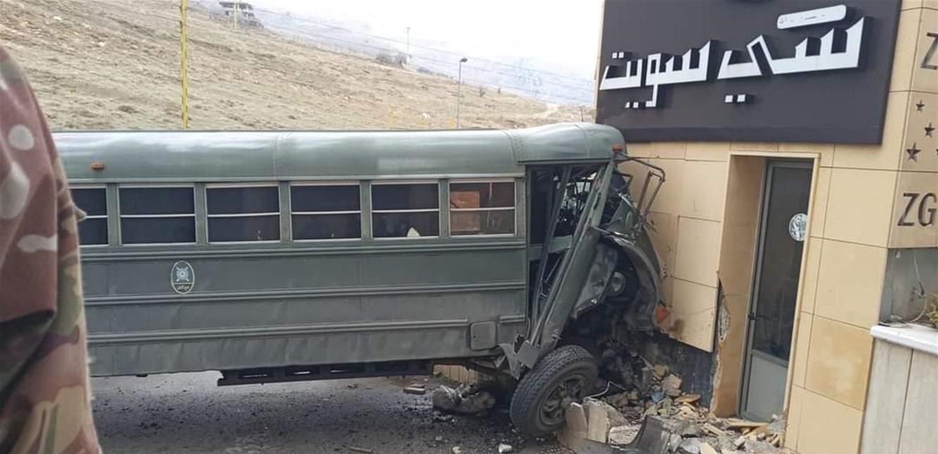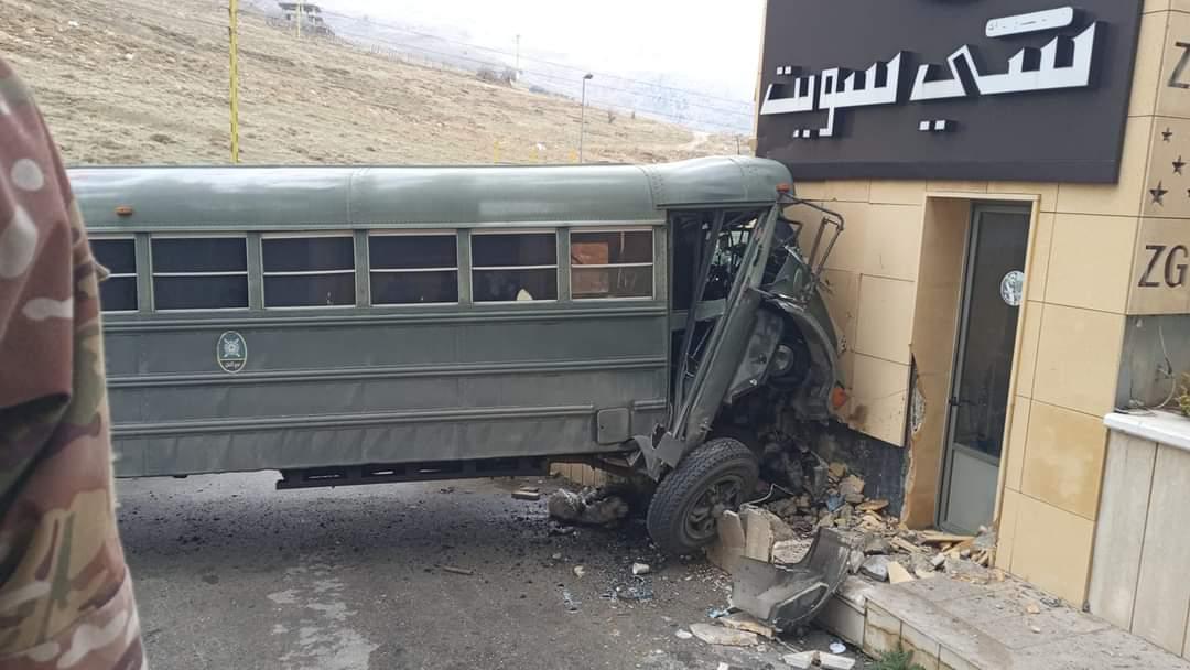اصطدمت حافلة تابعة للجيش بحائطٍ في بلدة المريجات – البقاع، ما أدى إلى جرح عدد من العسكريين بجروح مختلفة، وتم نقلهم إلى مستشفيات المنطقة للمعالجة.