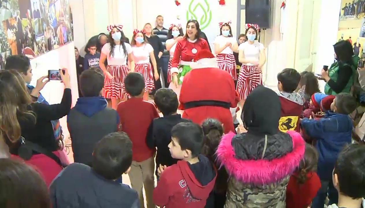 وفي ختام الاحتفال قام بابا نويل بتوزيع الشوكولا والهدايا على الأطفال