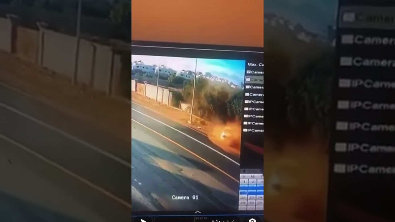 وظهرت المركبة وهي تنحرف بشكل مفاجئ أثناء سيرها على الطريق، لتصطدم بسور خرساني أدى إلى انقلابها، في حين خرج قائد المركبة ومرافق له، من دون تعرضهما لأي إصابة.