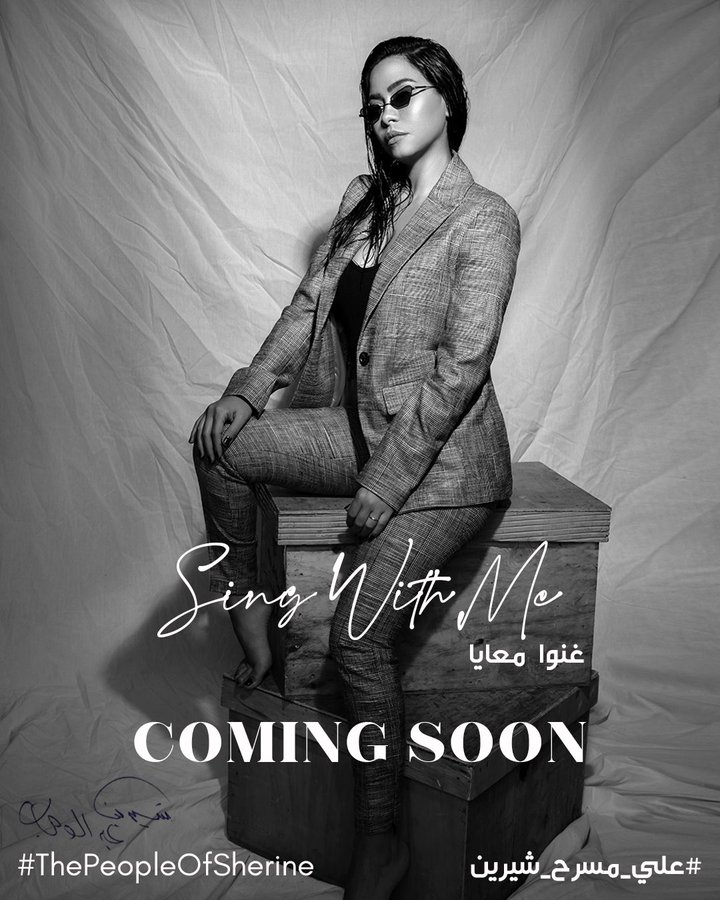 وظهرت شيرين في البوستر بلوك مختلف، حيث ارتدت بدلة ونظارة شمس سوداء، وظهرت بشعر طويل.