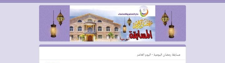 ينظم دار العلم والعلماء بالشراكة والتعاون مع جريدة سفير الشمال مسابقة يومية لمناسبة شهر رمضان المبارك، حيث سيصار الى نشرها على موقع الجريدة يوميا بعد صلاة العصر ويمكن للقراء الكرام الدخول على الرابط والاجابة على الأسئلة..