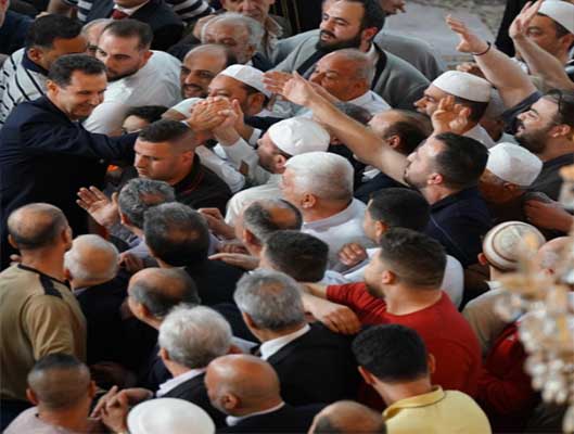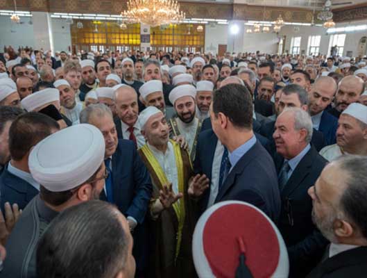 أدى الرئيس السوري، بشار الأسد، صباح اليوم الاثنين، صلاة عيد الفطر السعيد في رحاب جامع الحسن في حي الميدان بدمشق.
