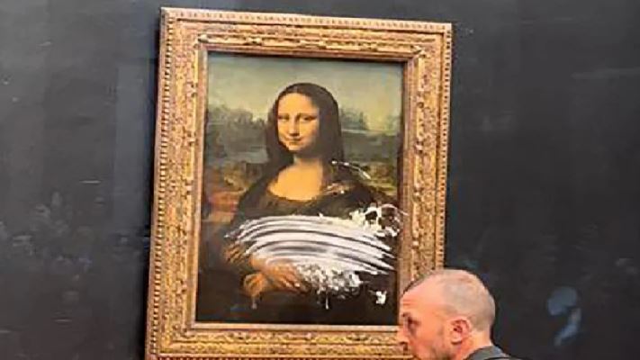 رشقت “الموناليزا”، أشهر لوحة في العالم، في متحف اللوفر في باريس أمس بقالب حلوى بالكريما، من دون أن تتعرض لأي ضرر بفضل الزجاج الواقي الذي يحميها، وفق شهادات انتشرت عبر الشبكات الاجتماعية.