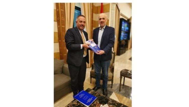 تسلم وزير الداخلية والبلديات في حكومة تصريف الاعمال بسام مولوي من بعثة الاتحاد الاوروبي لمراقبة  الانتخابات النيابية التي جرت في لبنان برئاسة رئيس اللجنة جورجي هولفيني ، نسخة من تقريرها النهائي حول الانتخابات.