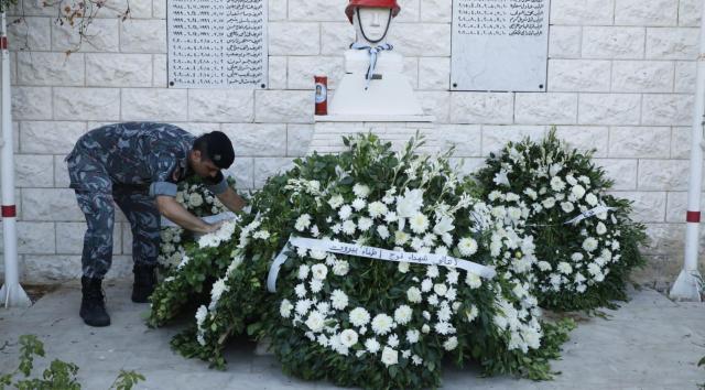 بداية النشيد الوطني ثم نشيد الفوج ووضع الأكاليل على نصب شهداء الفوج من قبل المحافظ عبود، إيلي أندريا عن مجلس بلدية بيروت، العقيد العجوز عن فوج إطفاء بيروت، العقيد صبرا عن فوج حرس بيروت، كريستيان هيلر عن جمعية “أوريينت هلف” وأهالي شهداء الفوج ثم مراسم تكريم الشهداء وقوفا وإطلاق الحمام في سماء العاصمة.