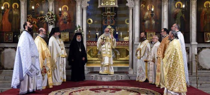 عاون البطريرك في الخدمة الأسقف موسى الخوري والأسقف يوحنا بطش، بمشاركة ممثل البطريرك الروسي كيرل لدى بطريرك أنطاكية الارشمندريت فيليب فاسيليتسيف ولفيف من الآباء الكهنة والشمامسة.