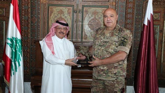 من ناحية أخرى، شدد العماد عون على أن قيادة الجيش تقدّر عاليًا المبادرات التي تقوم بها دولة قطر تجاه المؤسسة العسكرية، معتبرًا أنها من أهمّ مقوّمات صمود العسكريّين خلال الأزمة الشديدة التي تمرّ بها البلاد. كما ثمّن الجهود الدؤوبة التي يبذلها سفير دولة قطر لتعزيز العلاقات مع لبنان.