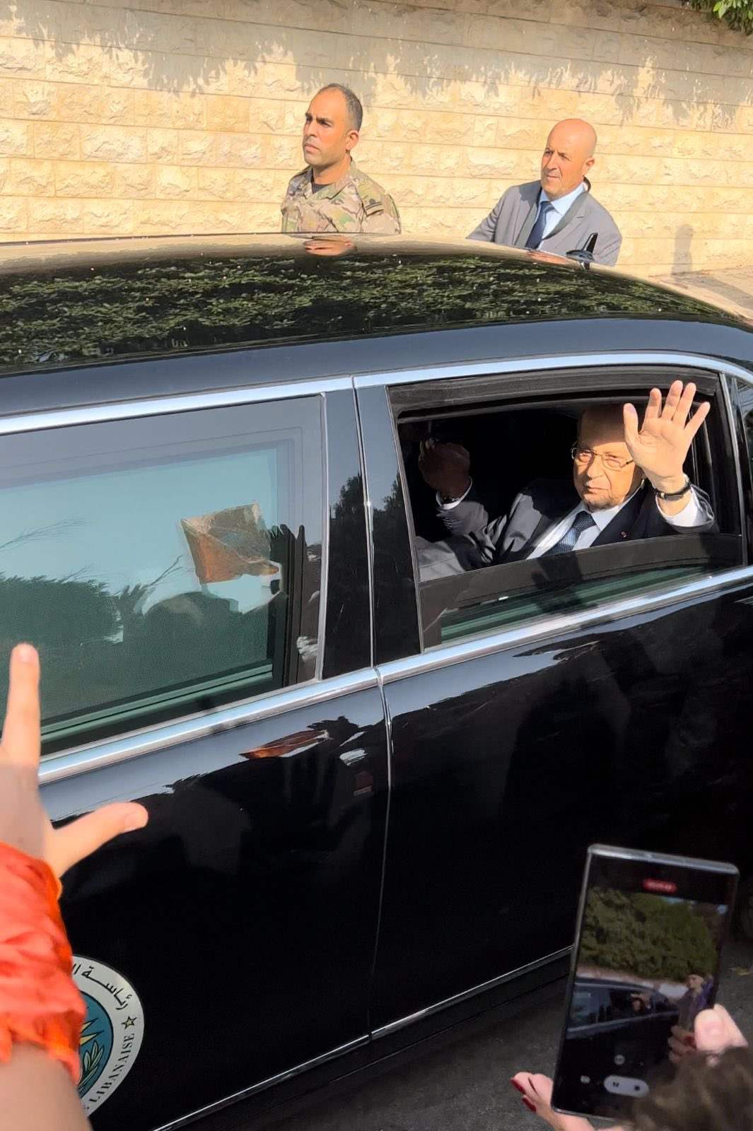 وفي تلك الأثناء، استقبلت “الزفة اللبنانية” سيارة عون الرئاسية التي انطلقت من بعبدا قرابة الساعة 12.45 بمواكبة من الحرس الجمهوريّ الذي سيبقى في الرابية حتى يوم غدٍ الإثنين.