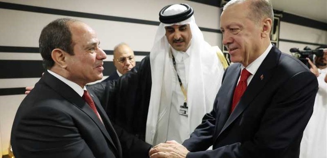 ذكرت وكالة رويترز للأنباء، الأحد، أن الرئيس المصري عبد الفتاح السيسي التقى نظيره التركي رجب طيب أردوغان على هامش افتتاح نهائيات كأس العالم في قطر.