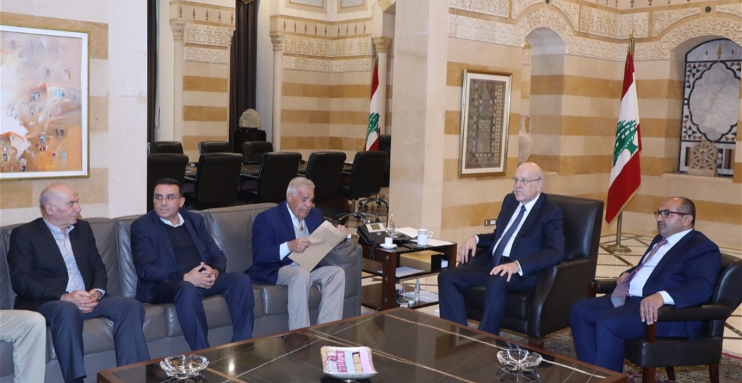 واستقبل رئيس الحكومة النائب بلال حشيمي ووفدا من الإتحاد العام للنقابات الزراعية في لبنان ضم رئيس الإتحاد يوسف محي الدين وأمينه العام ماجد سعيفان ورئيس نقابة مزارعي القمح في البقاع نجيب فارس.