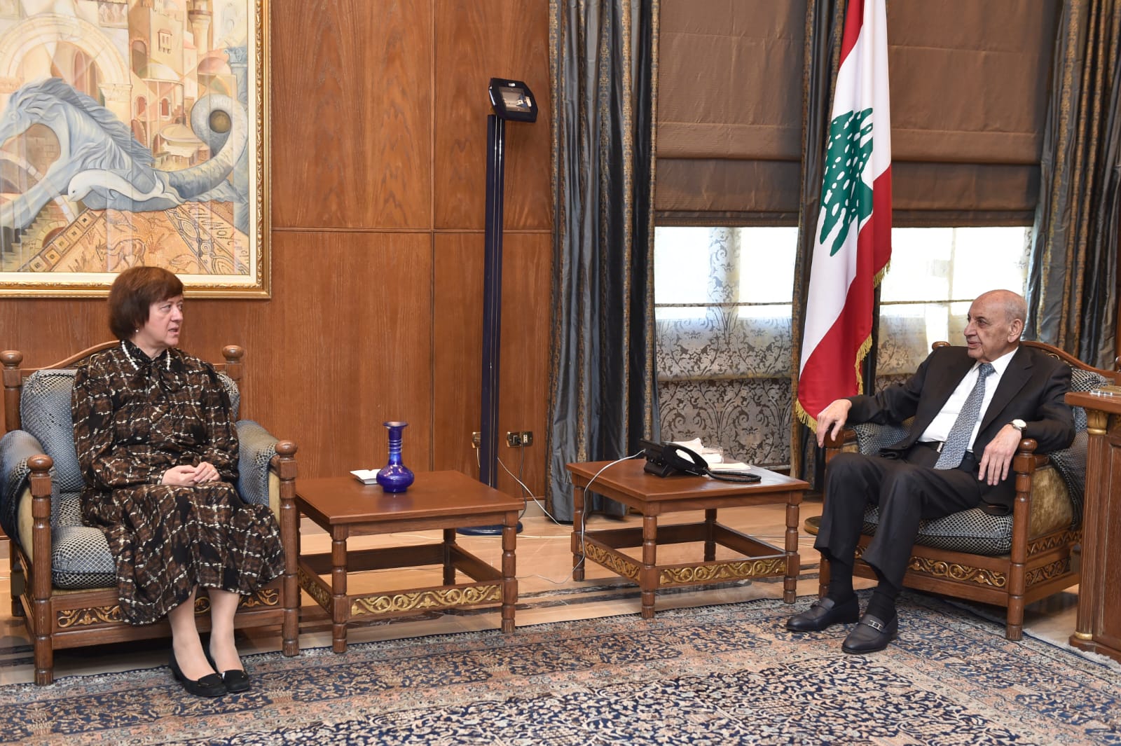 كما عرض رئيس المجلس تطورات الاوضاع وآخر المستجدات خلال استقباله المنسقة الخاصة للأمم المتحدة في لبنان يوانا فرونتسكا .