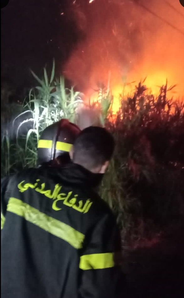 هذا و تعمل فرق الإطفاء في الدفاع المدني على إخماد الحريق.