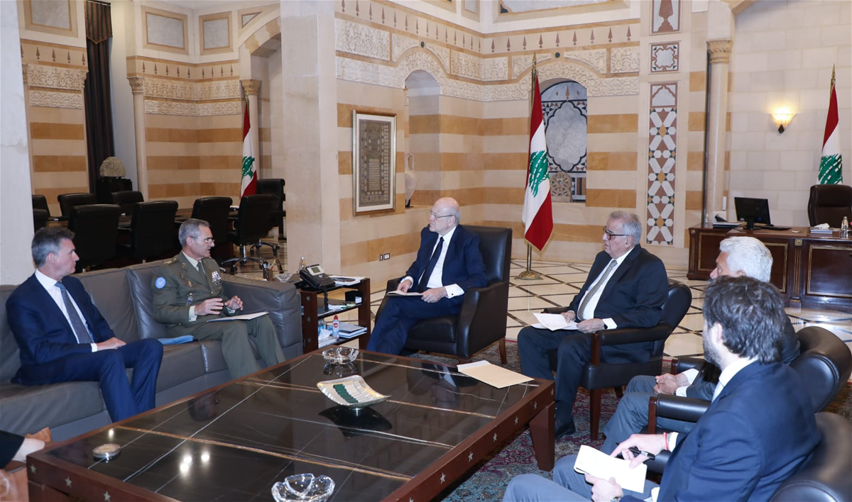 وكان رئيس الحكومة، اجتمع في حضور وزير الخارجية والمغتربين عبدالله بو حبيب، مع القائد العام للقوات الدولية في الجنوب الجنرال ارولدو لازارو، يرافقه المستشار السياسي هيرفي لو كوك، وتم خلال اللقاء بحث الوضع الأمني في الجنوب.