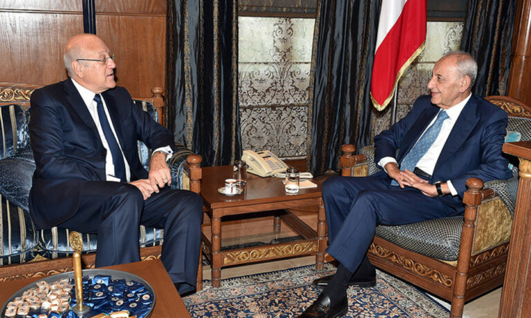 استقبل رئيس مجلس النواب نبيه بري في مقر الرئاسة الثانية في عين التينة، رئيس الحكومة نجيب ميقاتي وجرى عرض للاوضاع العامة وآخر المستجدات السياسية لاسيما ملف حاكمية مصرف لبنان.