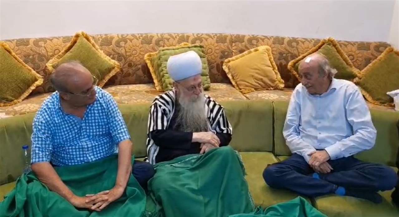 استقبل المرجع الروحي في طائفة الموحدين الدروز الشيخ ابو علي سليمان ابوذياب في دارته في الجاهلية النائب السابق وليد جنبلاط يرافقه القاضي غاندي مكارم بحضور رئيس حزب التوحيد العربي وئام وهاب وعدد كبير من رجال الدين.