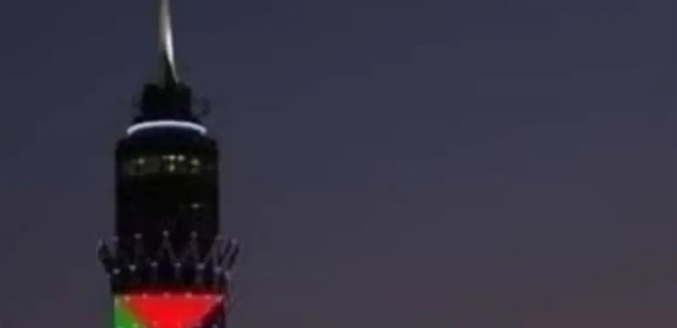 فيما جاء بالتعليق المرافق: “برج القاهرة يتزين بالعلم الفلسطيني. هنا القاهرة، هنا فلسطين”.