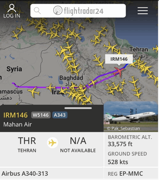 وتم تداول صورة توضح كيف غيرت الطائرة مسارها، عقب استهداف الطائرات الاسرائيلية مطاري دمشق وحلب.