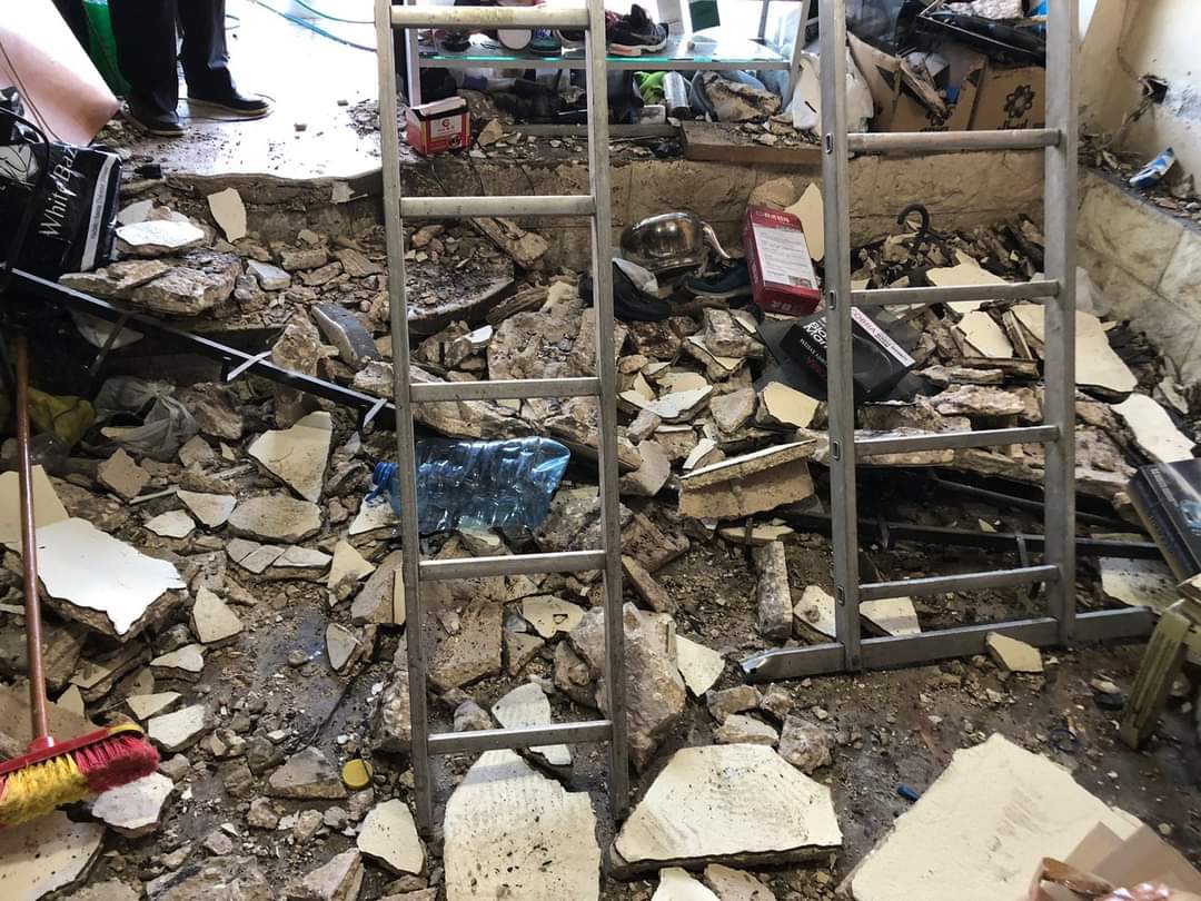 سقط سقف منزل فجر اليوم في منطقة القبة – طرابلس على مغسل للسيارات تحته مباشرةً.