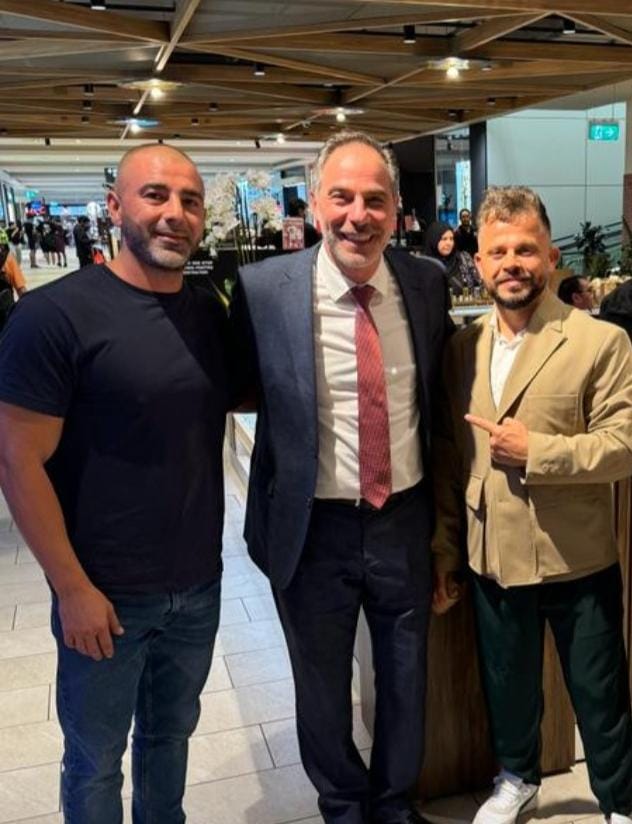 لقد تشرفنا بزيارة سعادة قنصل لبنان العام في سيدني الأستاذ شربل معكرون والوزير اللبناني الأصل جهاد ديب وزير الخدمات العامة والحكومة الرقمية ورئيس بلدية كانتربري- باكستاون الأستاذ بلال حايك الذي يواكب جولتي منذ أن وصلت إلى سيدني مع الشكر الكبير لكل جهوده في إنجاح زيارتي. كما إلتقيت جمعية المشاريع الخيرية في حفل عشانها السنوي ،