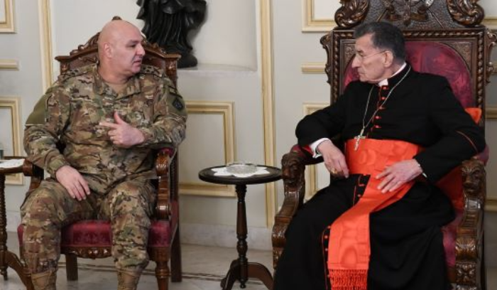 قبل ان يجول على رئيسي مجلس النواب نبيه بري وحكومة تصريف الاعمال نجيب ميقاتي اليوم، استهل قائد الجيش العماد جوزف عون صباحا من الصرح البطريركي في بكركي واجتمع مع البطريرك الماروني الكاردينال مار بشارة بطرس الراعي،فقدم له التهانئ بالعيد ثم عقد معه خلوة تناولا خلالها المستجدات الامنية في البلاد.