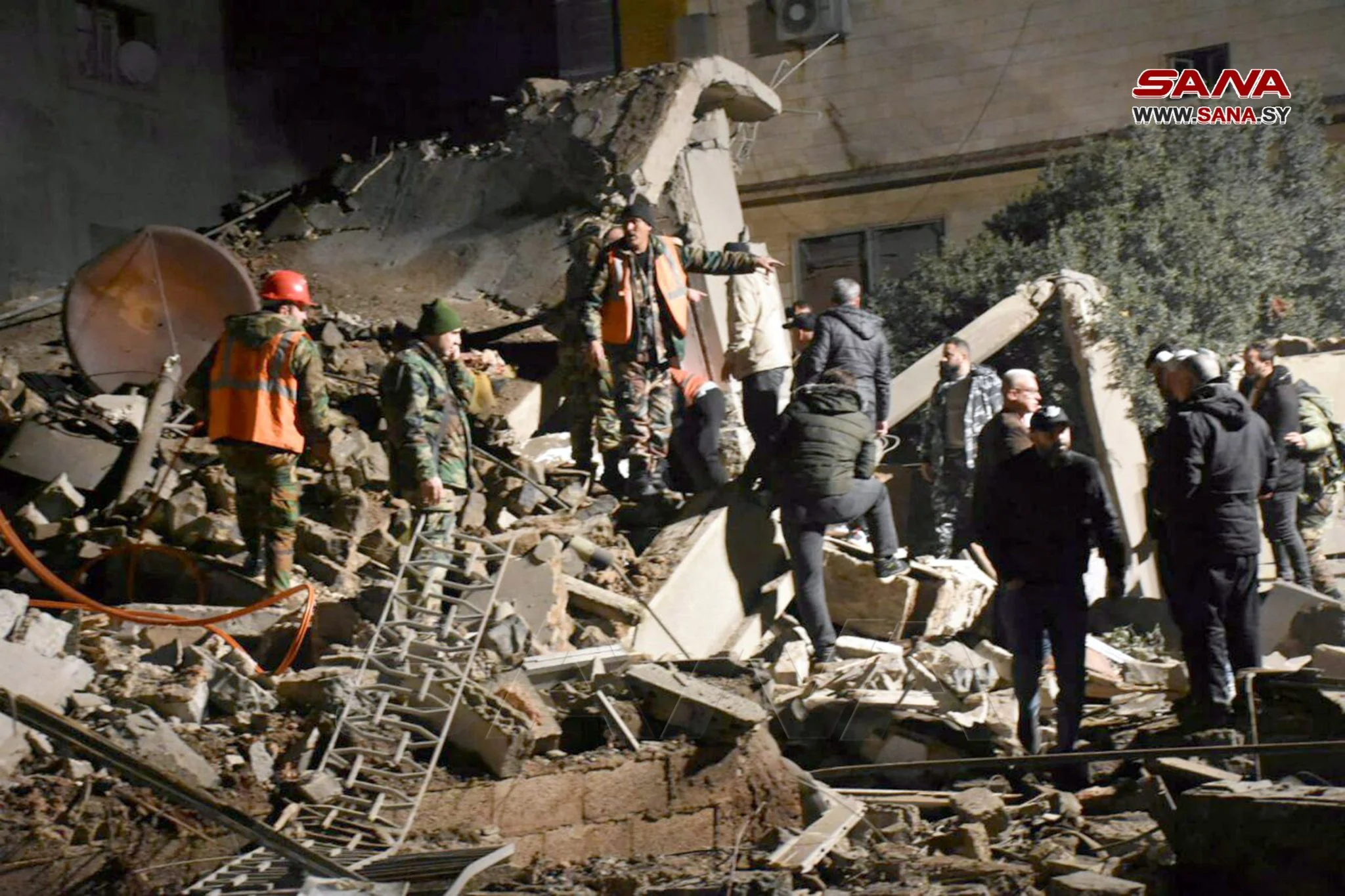 وبثّ التلفزيون الرسمي السوري لقطات تظهر عناصر إغاثة يبحثون بين أنقاض ما يبدو أنّه مبنى منهار ويخلون شخصاً على نقّالة.