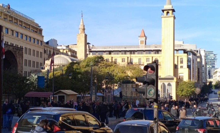 وأدى التجمّع الى زحمة سير خانقة في وسط بيروت بسبب اقفال كل الطرق المؤدية الى السراي الحكومي قبيل جلسة مجلس الوزراء.