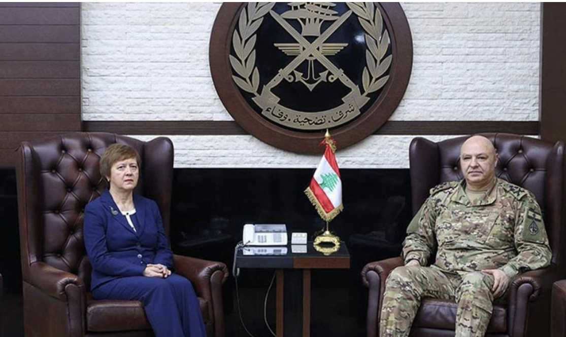 استقبل قائد الجيش العماد جوزاف عون في مكتبه في اليرزة المنسقة الخاصة للأمين العام للأمم المتحدة في لبنان Joanna Wronecka، وتناول البحث الأوضاع العامة في البلاد والتطورات على الحدود الجنوبية.