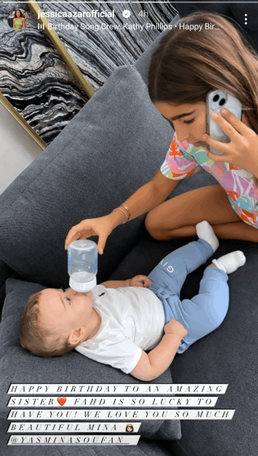 فقد نشرت جيسيكا صورة عبر خاصية الستوري على حسابها الخاص على تطبيق انستغرام بدت فيها ياسمينا وهي تهتم بشقيقها “فهد”.
