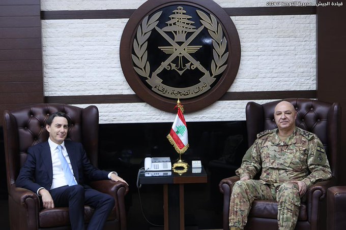 استقبل قائد الجيش العماد جوزاف عون في مكتبه في اليرزة كبير مستشاري الرئيس الأميركي Amos Hochstein بحضور السفيرة الأميركية في لبنان Lisa A. Johnson، وتناول البحث الأوضاع العامة في البلاد والتطورات على الحدود الجنوبية.