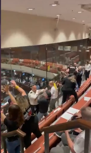 ونشر الكنيست، عبر حسابه على منصة إكس، مقطع فيديو لهم وهم يهتفون في الجزء المخصص للضيوف، دون وصول هتافهم إلى قاعة الكنيست نظرا لوجود ساتر زجاجي.