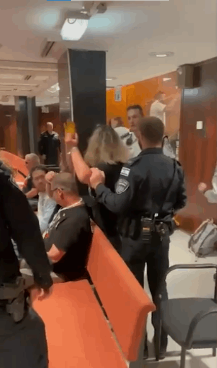 وشوهد أفراد من أمن الكنيست وهم يتصدون للمقتحمين الذين كانوا يهتفون مطالبين بإبرام صفقة لإطلاق سراح الأسرى، وقام الحارس بجمع المحتجين في المكان المخصص للضيوف