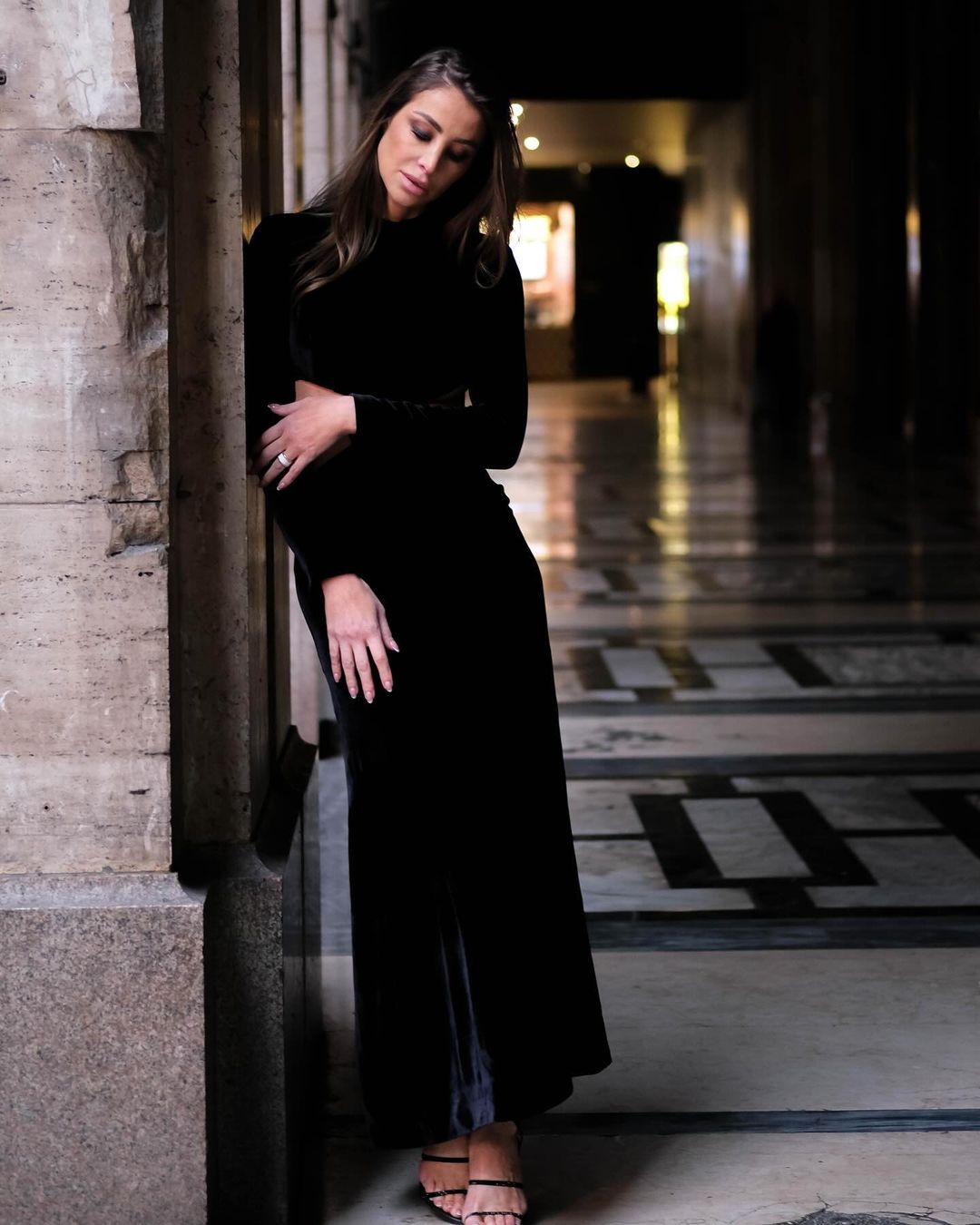 وأطلت أنابيلا بفستان طويل أسود اللون يتميز بفتحتين عند منطقة الخصر أثناء تواجدها في مدينة ميلانو الإيطالية.