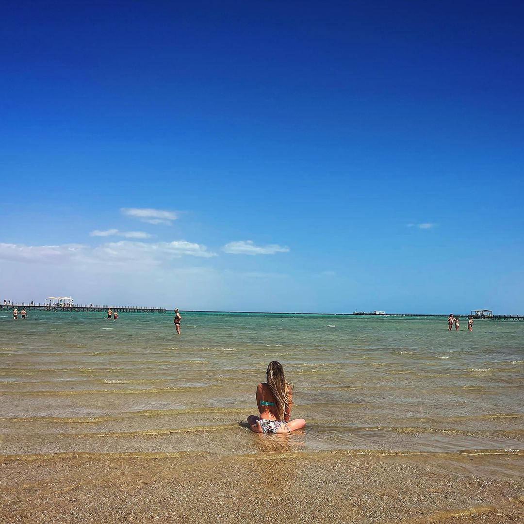 وأطلت باميلا في الصورة وهي تستمتع بوقتها على شاطئ البحر في مصر، مرتدية المايوه.