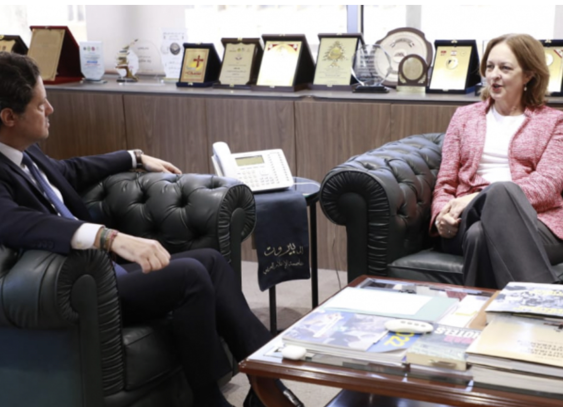 استقبل وزير الإعلام في حكومة تصريف الاعمال زياد المكاري بعد ظهر اليوم في مكتبه في الوزارة السفيرة الأمريكية في لبنان ليزا جونسون ، حيت تم تداول الشؤون السياسية والإعلامية والتعاون المشترك بين البلدين.