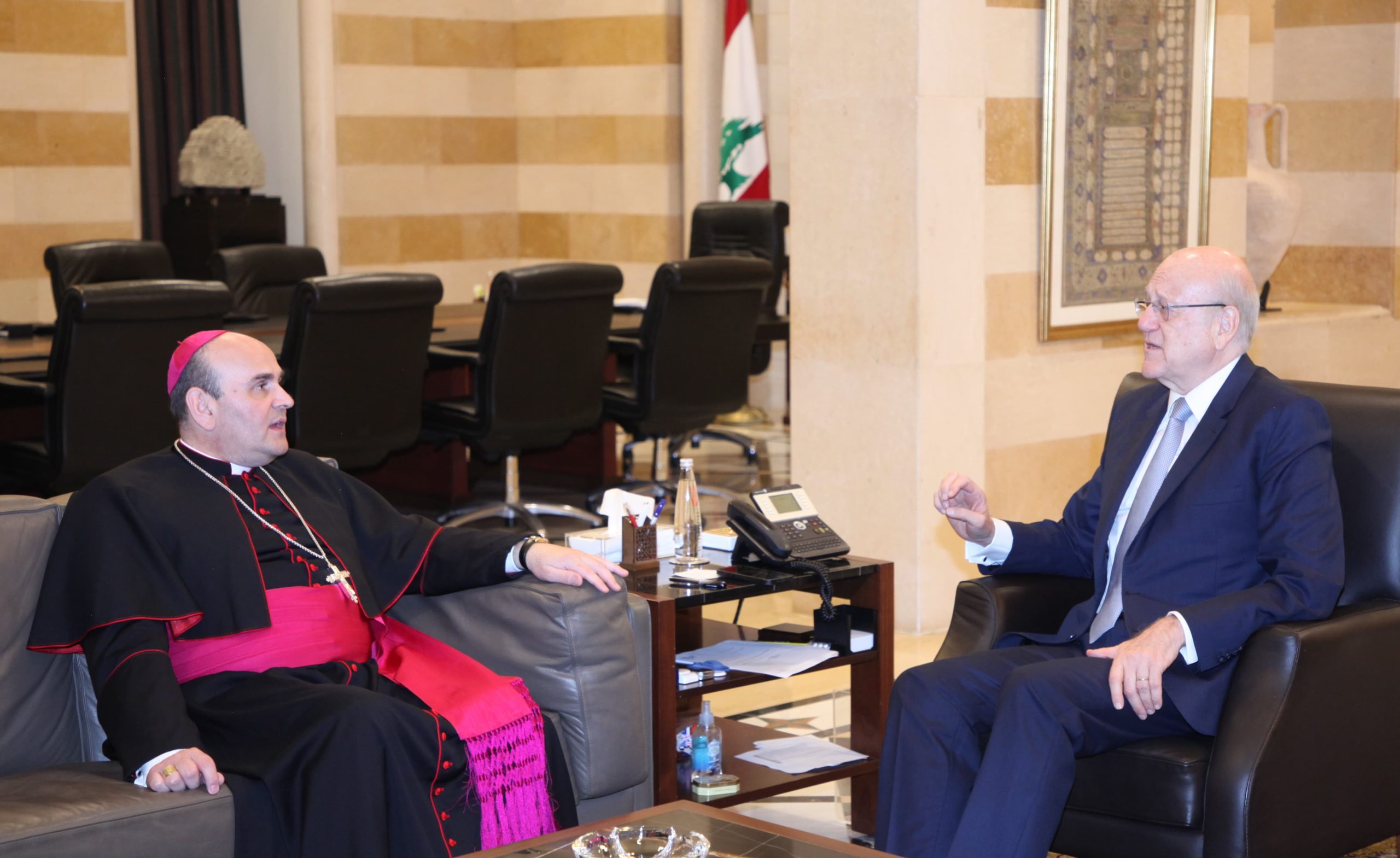 واستقبل الرئيس ميقاتي السفير البابوي في لبنان المونسنيور باولو بورجيا وجرى عرض للأوضاع العامة والعلاقات بين لبنان والفاتيكان.