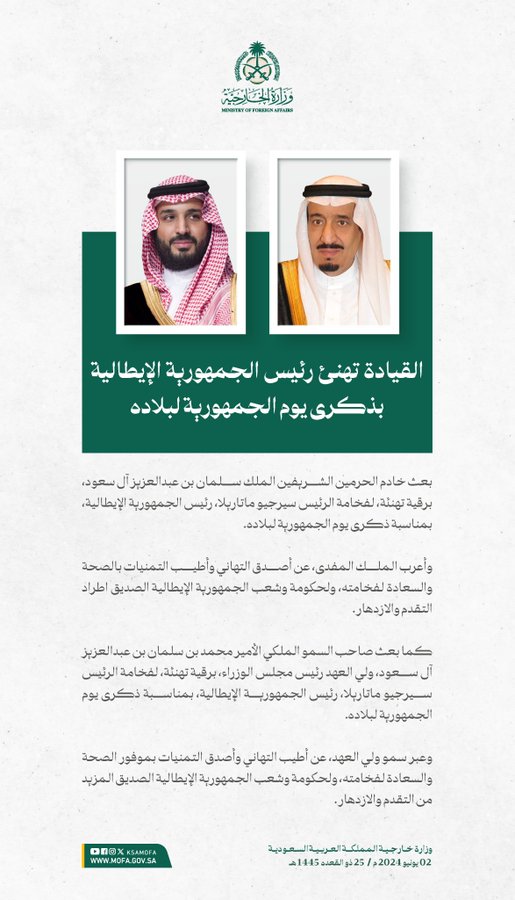 كذلك، بعث الملك السعوديّ سلمان بن عبد العزيز آل سعود، برقية تهنئة، لولي العهد الكويتي.
