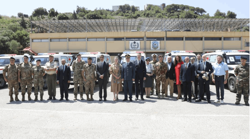سلّم الاتحاد الأوروبيّ ست سيارات إسعاف إلى الجيش اللبنانيّ، في حفلة أُقيمت في مقر اللواء اللوجستيّ في 25 حزيران 2024.