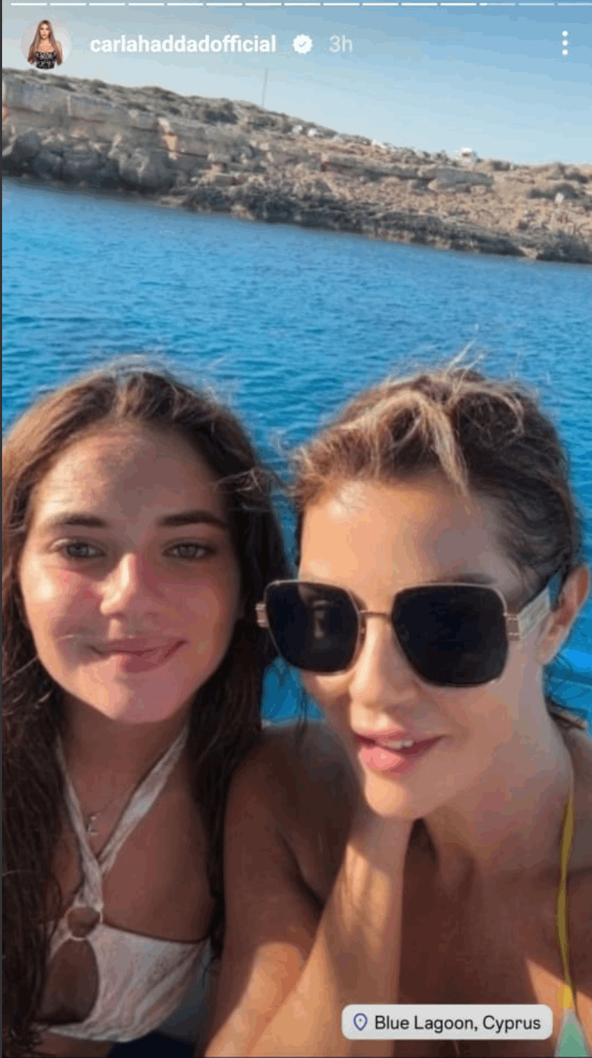 وبدت كارلا وهي تستمتع بوقتها على البحر في قبرص برفقة ابنتها “ليا” التي أصبحت نسخة عنها.