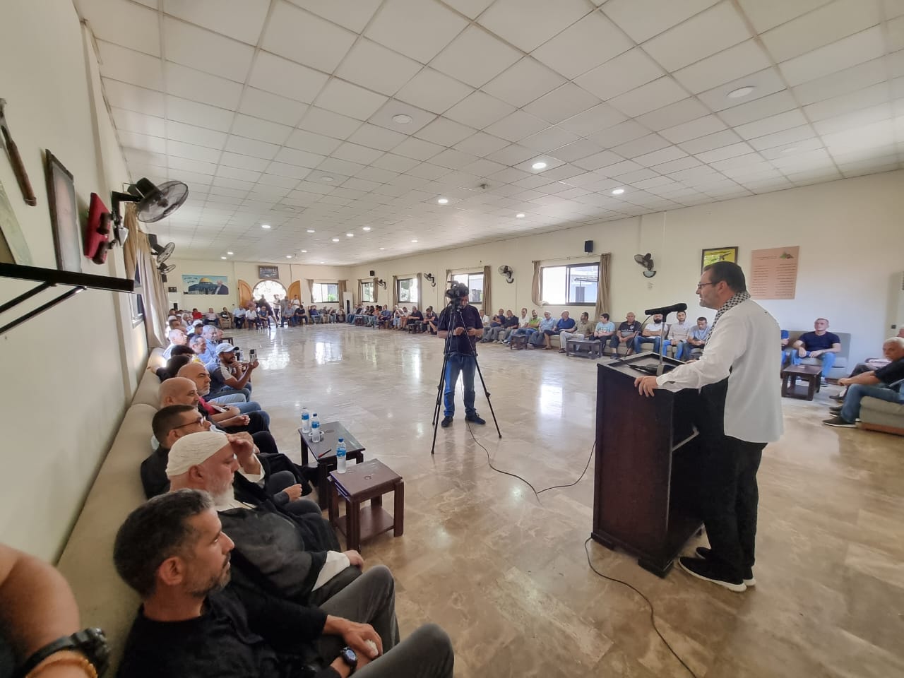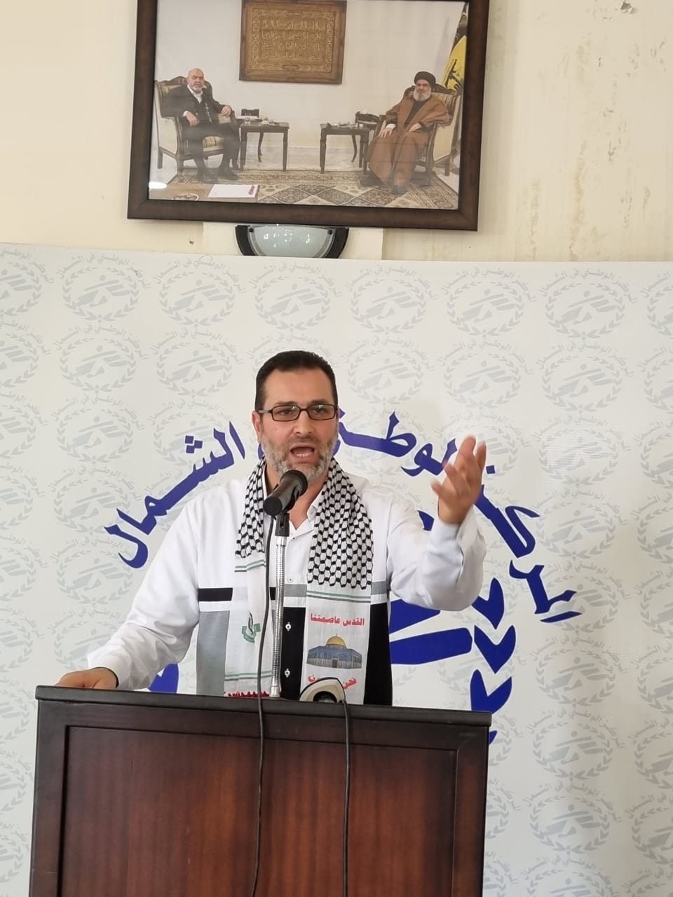بدوره تحدث المسؤول السياسي لحركة المقاومة الإسلامية-حماس في الشمال أبو بكر الأسدي، حيث قال نلتقي هنا منذ ٧ أوكتوبر في هذه الدار الوطنية لنقول كلمتنا بوجه العدو الصهيوني و مشروعه الاجرامي في المنطقة.