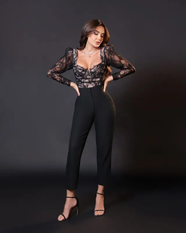 في إطلالتها الأخيرة عبر برنامج “عندي سؤال”، اختارت طقمًا من “Noiro Concept Store” عبارة عن سروال أسود مع بلوزة من الشيفون. اللوك مميز ببساطته. سروال أسود ضيق مع خصر عالٍ، أما البلوزة ذات الأكمام المنفوشة، فمصنوعة من أقمشة الشيفون، ومليئة بالحركة، والدانتيل على الصدر.