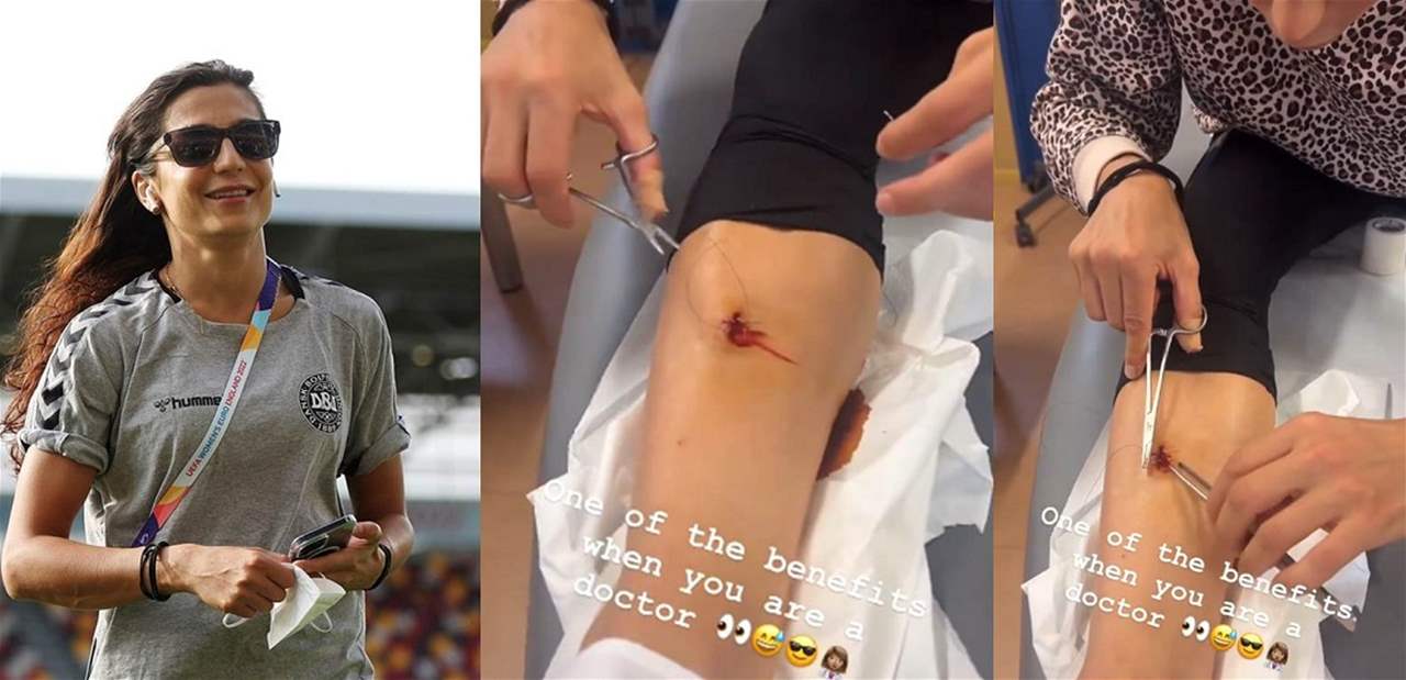 ولم يكن الأمر مشكلة بالنسبة للاعبة التي تعمل كطبيبة، وهي شاركت مقطع فيديو على منصة إكس، ظهرت فيه وهي تقوم بخياطة الجرح مستخدمة ملقطا ومقصاً.