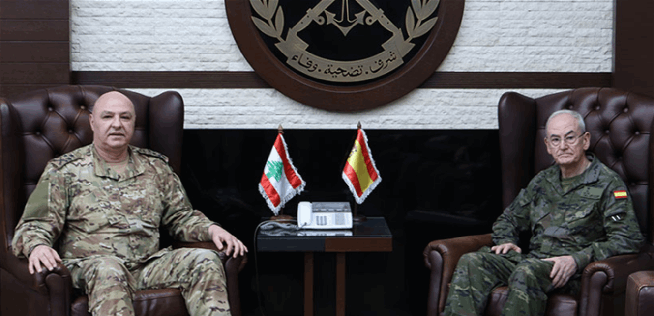 استقبل قائد الجيش العماد جوزاف عون، في مكتبه، في اليرزة، رئيس أركان الدفاع الإسباني الجنرال