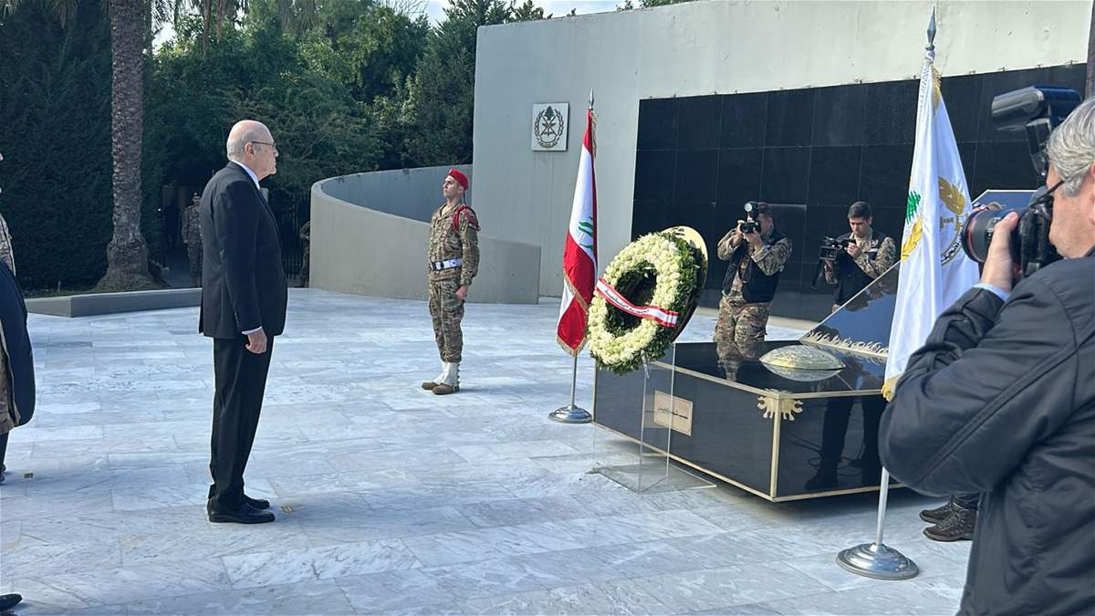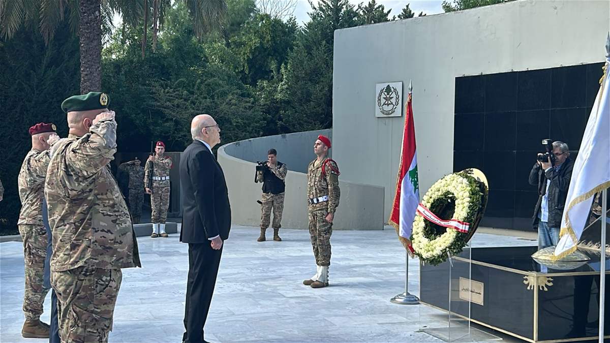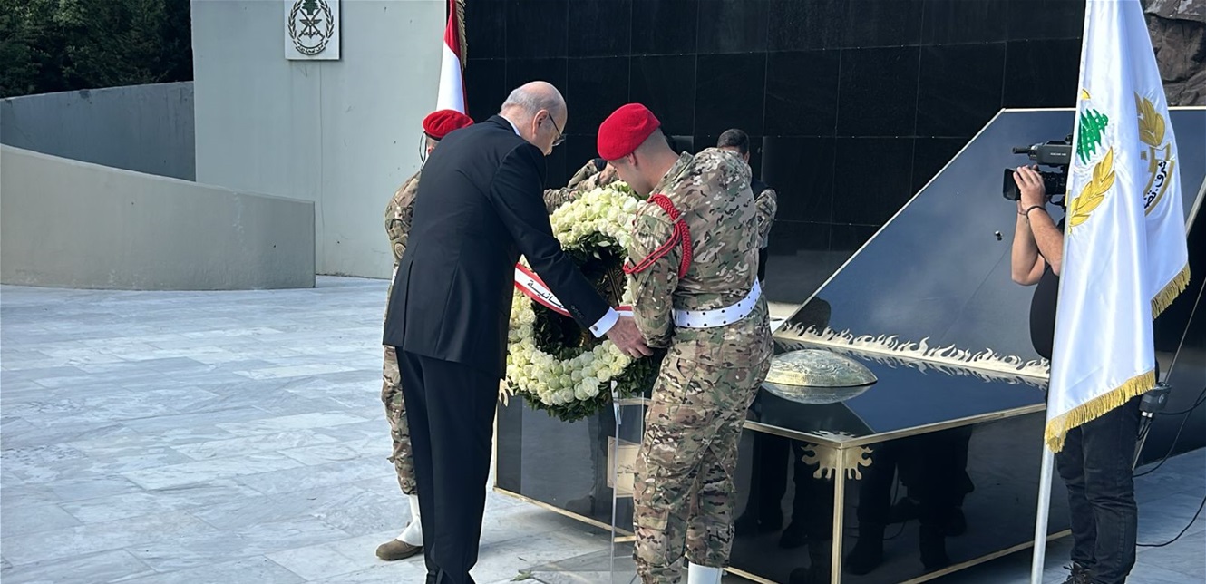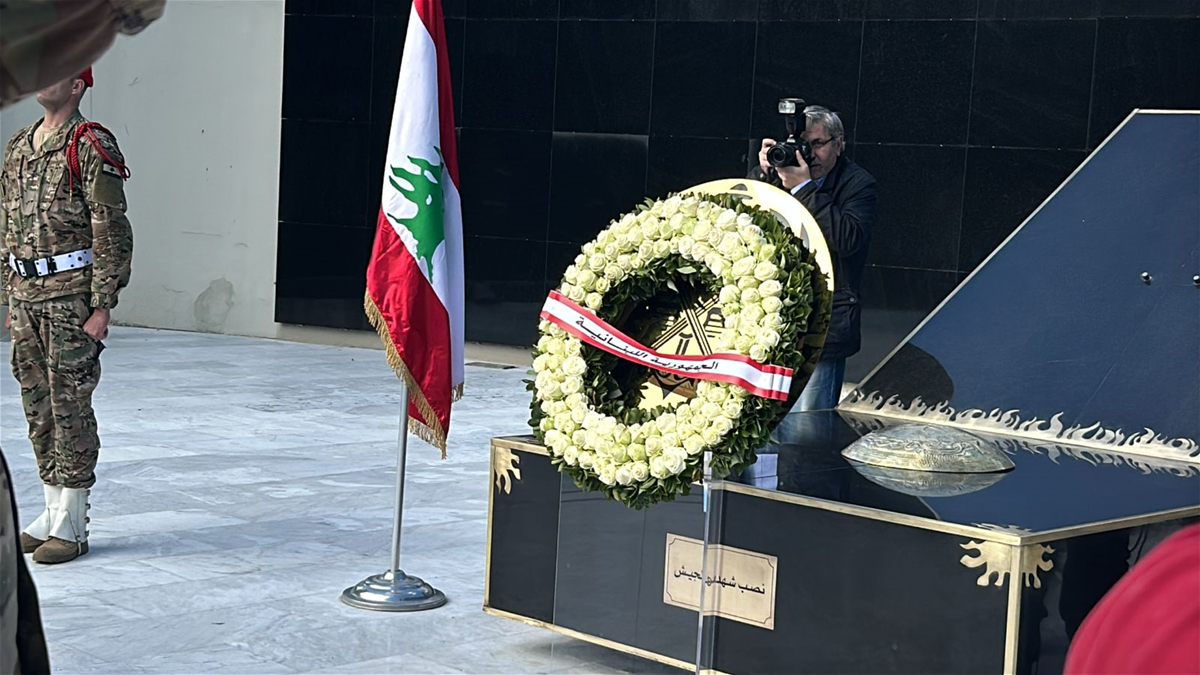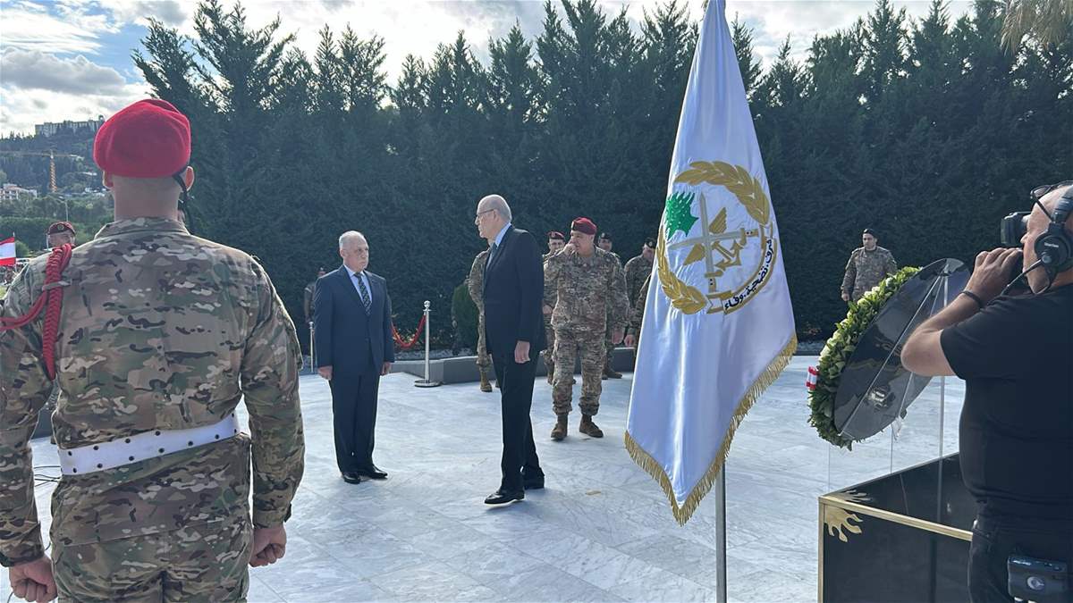 ووضع كل من ميقاتي وعون وسليم إكليلا من الزهر على النصب التذكاري لشهداء الجيش.
