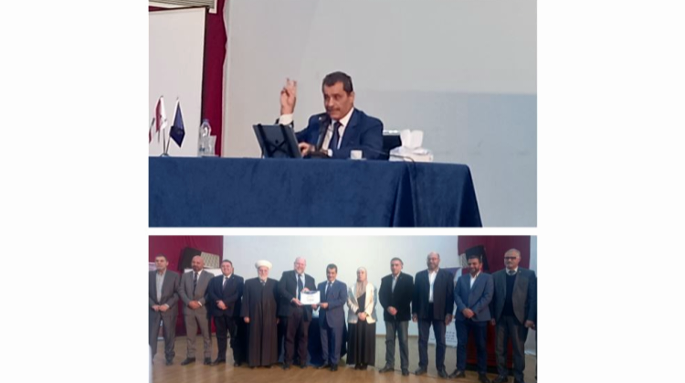 وفي ختام اللقاء وبعد نقاش دار بين الحضور وطالب، قدم الدكتور درنيقة شهاده التقدير باسم رئيس الجامعة الدكتور رافت ميقاتي لطالب.