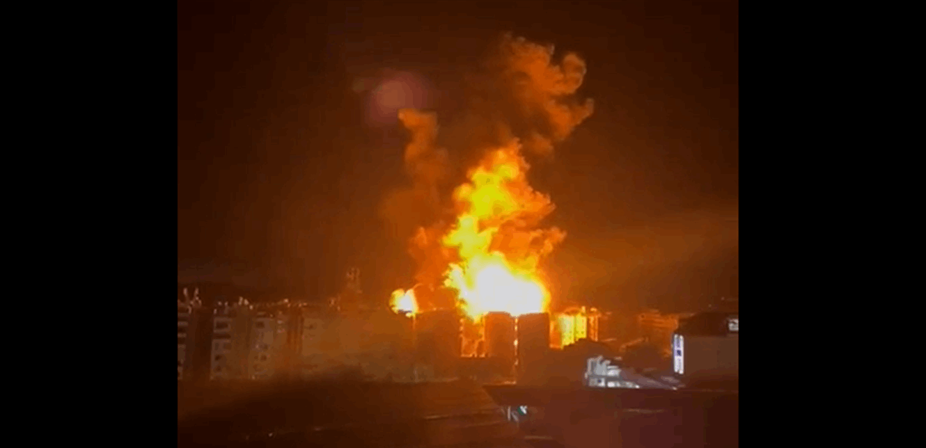 وأظهر الفيديو حصول انفجارات هائلة بشكلٍ متتالٍ، ما أدى إلى تدمير عددٍ من المباني السكنية.